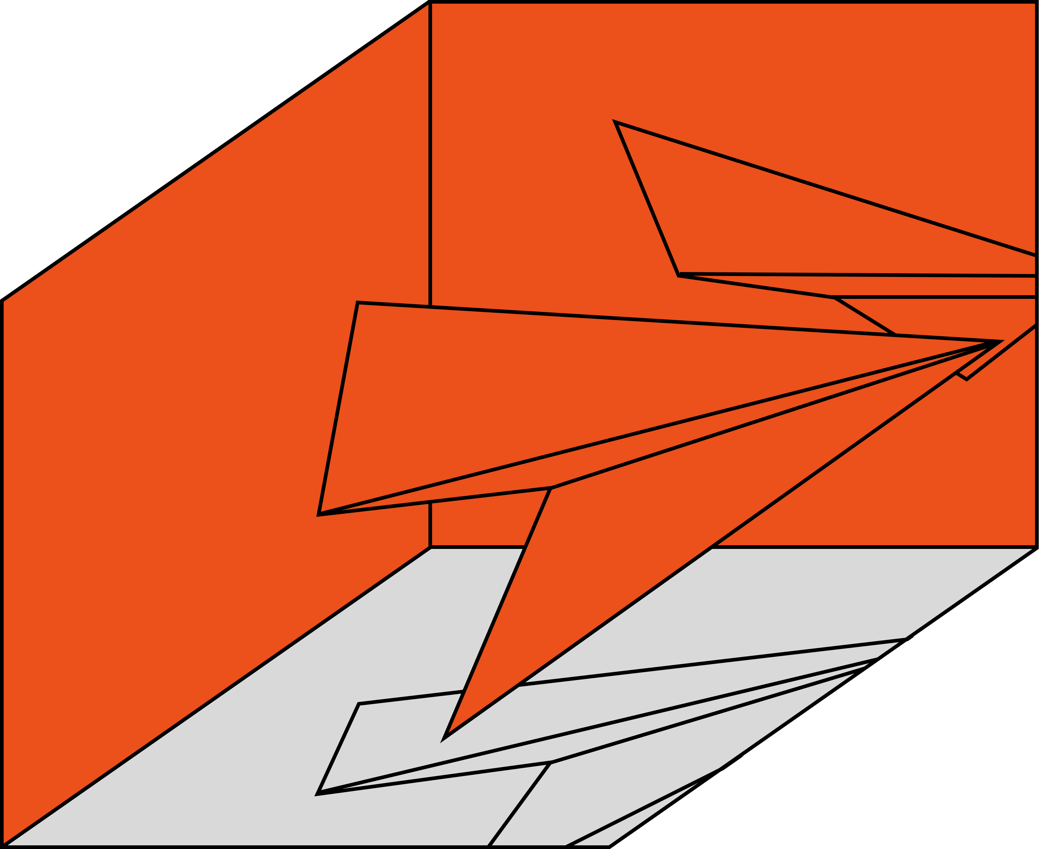 This motif has been translated into a simplified folded fighter jet whose flat projections are depicted in a schematic space, varying spatially and graphically.